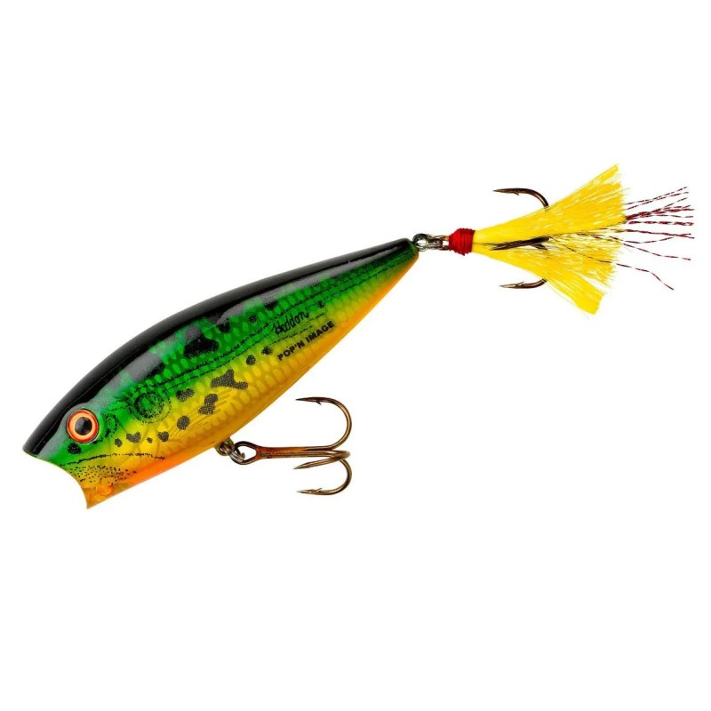 El versátil Pop n imagen permite a los pescadores cumplir las dos principales acciones de superficie: "popping" y "Pasear al perro" El Heddon Pop'n está diseñado para una buena capacidad de lance y cuenta con un acabado y ojos muy realista y afilados anzuelos tripleta XCalibur.