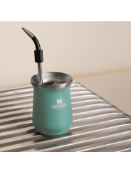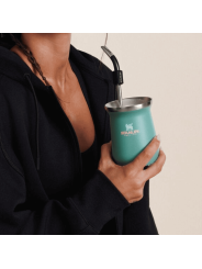 Equilibrio logrado. La colección Stanley 1913 x Anto es una poderosa fusión de serenidad inspirada en el verde salvia. El mate de 8oz tiene la forma tradicional de una calabaza y está fabricada en acero inoxidable. Su aislamiento al vacío de doble pared mantiene tu bebida a la temperatura ideal, para que puedas encontrar tu ritmo diario.Buenos días